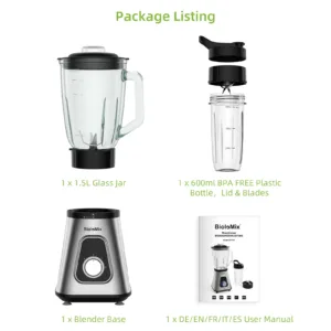 [جرة زجاجية متينة 1.5L]: مصنوعة من مواد عالية الجودة ومتينة ، مرفق جرة زجاجية 1.5L قوي بما يكفي لتحمل أي مهام مزج أو تجهيز الأغذية.