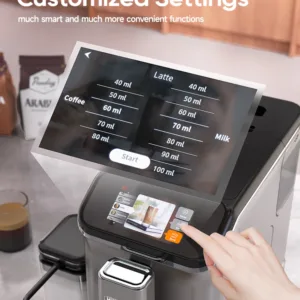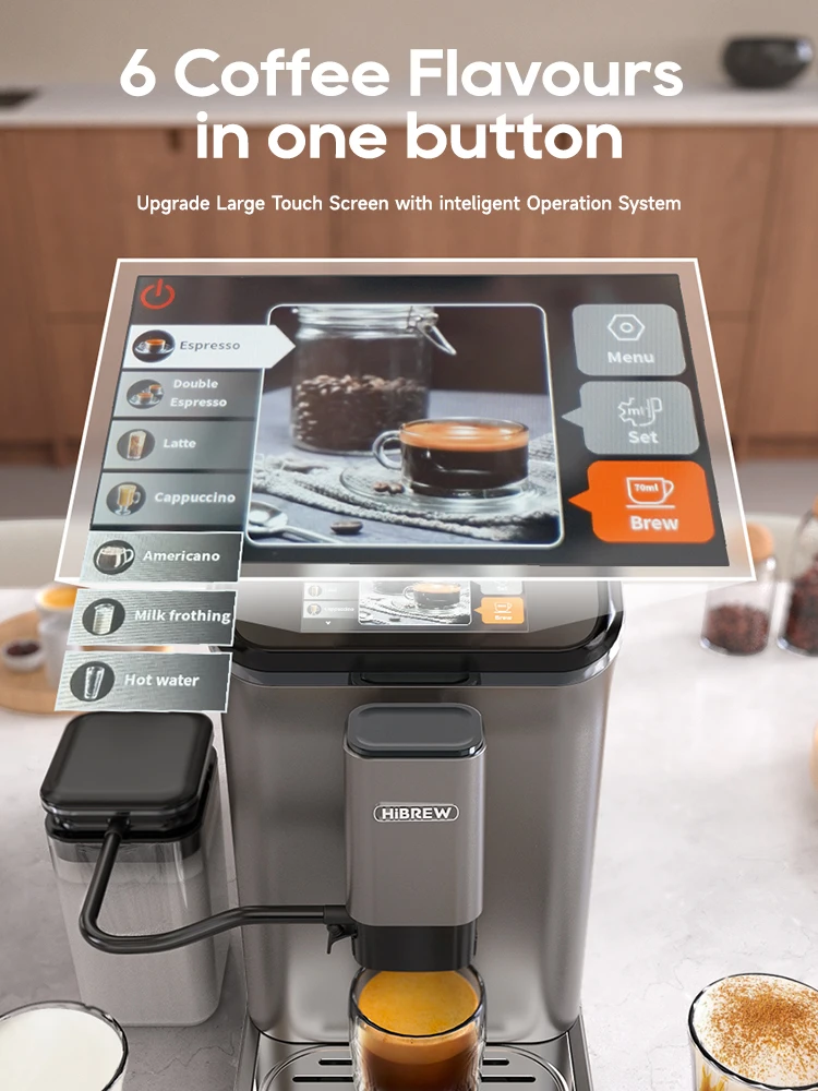 • HiBREW Fully Automatic Espresso Machine, Cappuccino Milk Frother, 6 Coffee Capsules, Touch Screen with Grinder, H16