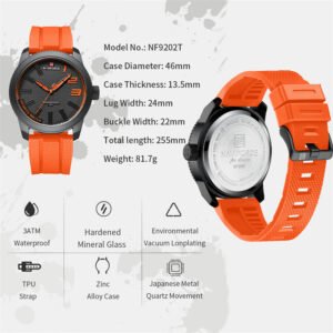 نافي فورس ساعات رياضية مقاومة للماء للرجال، ساعة بسوار من السيليكون مع عقرب ثواني