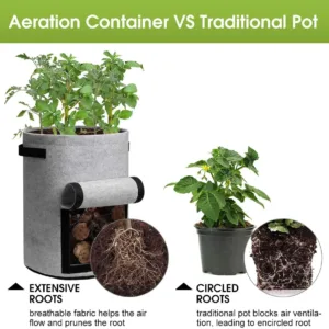 • مع نافذة جانبية لسهولة حصاد البطاطس، ومقابض مزدوجة لأكياس الزراعة لدينا يمكن أن توفر لك الكثير من الراحة عند تحريكها.