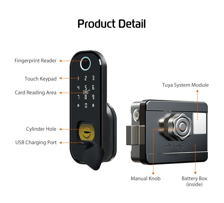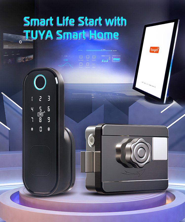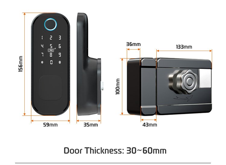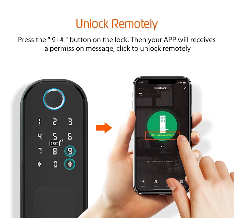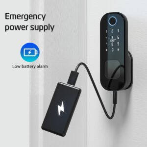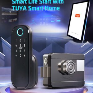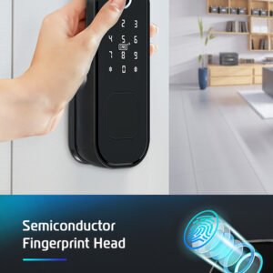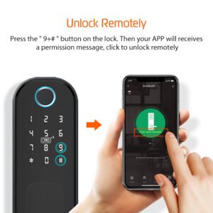 قفل الكتروني يعمل بالبصمة وبمفتاح وبقطة بلاستيكيه يتم برمجتها ، ويمكن ربطها عن طريق التطبيق ، جميل جداً