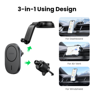 • 【حامل سيارة 2 في 1】: حامل شاحن السيارة يوجرين مجهز بجزأين لتركيب حامل السيارة، ليس فقط على لوحة العدادات/الزجاج الأمامي، ولكن أيضًا على فتحة التهوية، مما يتيح لك حمل هاتفك المحمول على السيارة بشكل أكثر مرونة وحرية